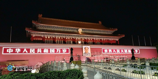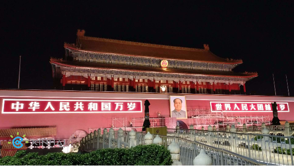 天安門方向可以看到天安們城樓的主視圖,天安門中間懸掛的是毛主席的巨幅畫像,兩邊懸掛的標語分別是“中華人民共和國萬歲”和“世界人民大團結萬歲”使用的是的6毫米欣海光擴散板,用來制作標語,十分美觀大方。